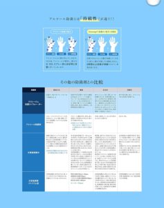 従来のアルコール除菌とは異なり、抗菌ナノ粒子が菌の細胞に吸着し細胞壁の成長を阻害することで、菌を自己融解へ導く仕組みが特徴です。